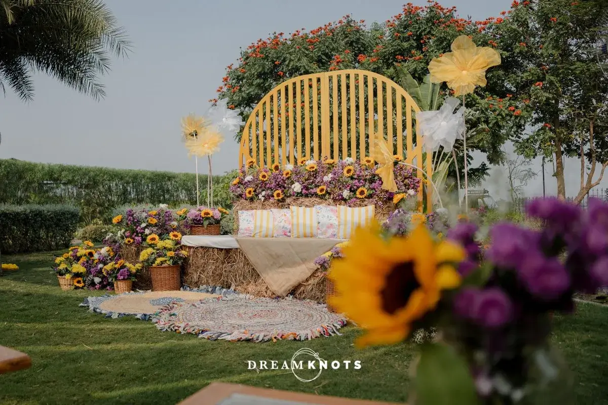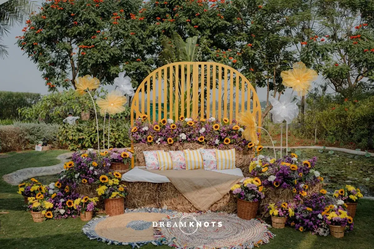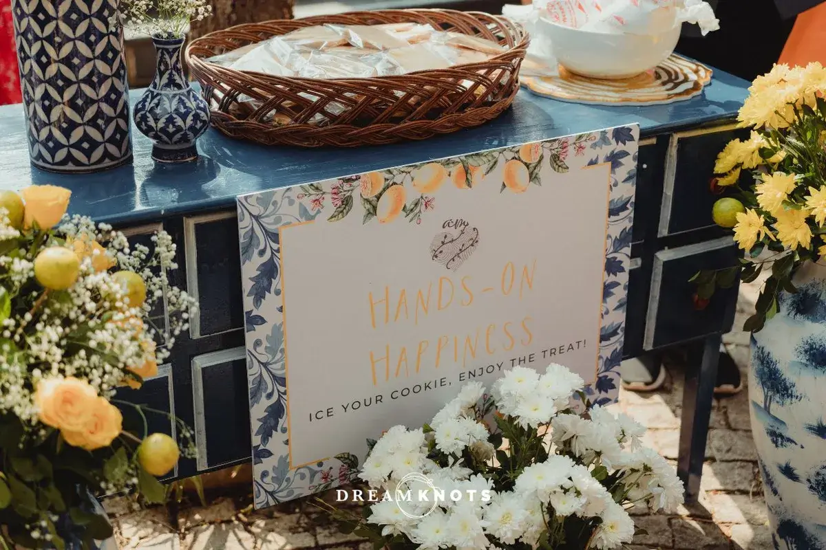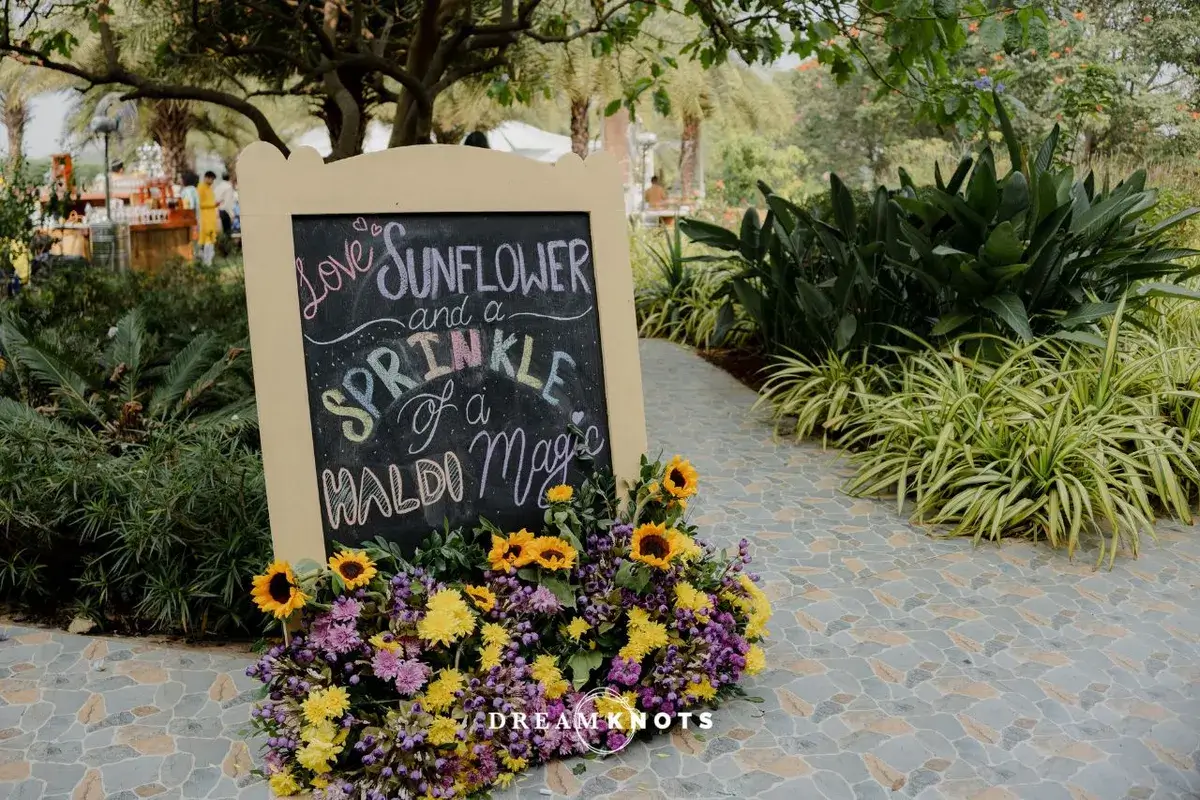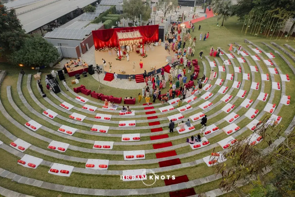 Their wedding was a perfect reflection of them. Colourful, chaotic in the best way and full of heart. The Haldi was a full-blown celebration with sunflowers, flying petals and a whole lot of colours and we’re not just talking decor. The Mehendi felt like a Pinterest board gone wild, in the prettiest way possible. French blues, quirky corners, gelato stations and yes, a cycle no one rode but everyone posed with and the wedding? Bold, regal and red, with a mandap that looked straight out of a movie. But somehow, amidst the glam, it still felt like home.